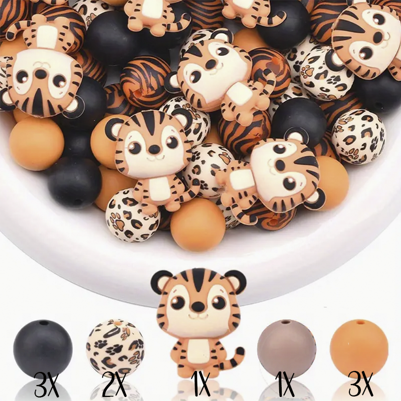 CONJUNTO SILICONE TIGRE 2,95 € Desconto de %. Partilhar Comprar Contactar 3 unidades em stock | SKU: CR00275 PACK TIGRE INCLUI 10 CONTAS EM SILICONE
